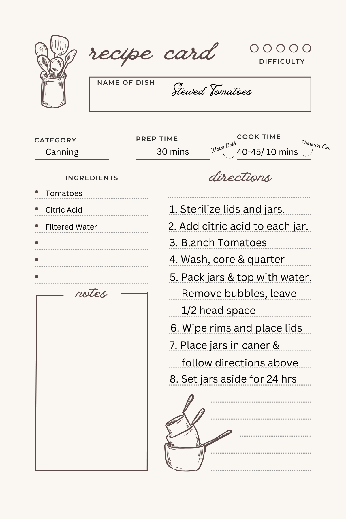 One of the best and easiest ways to preserve your home grown tomatoes is to can stewed tomatoes! What are they and why are they worth it? Great question, I’d love to tell you! 😉 Stewed tomatoes are skinned, quartered and canned in water. They are fantastic for chilli, any winter soup, casserolles and more. They are a pantry staple for us every winter! Once you’ve done the process once or twice you’ll be able to do it in your sleep. Below are the detailed steps along with a recipe sheet to download!
